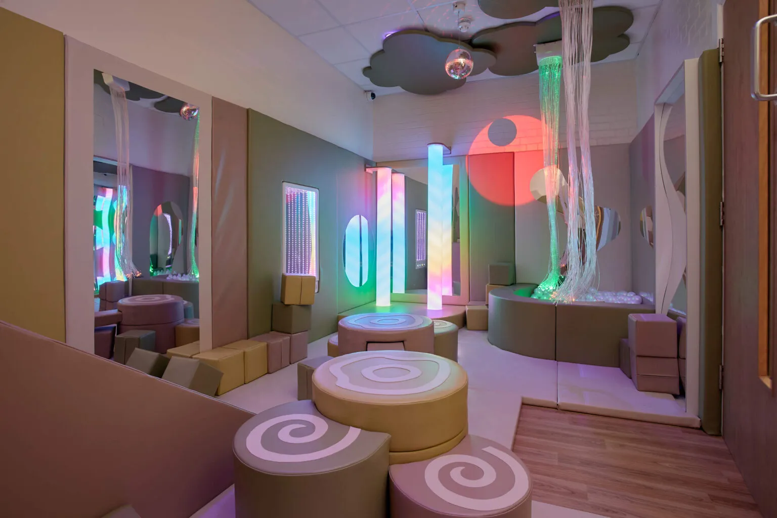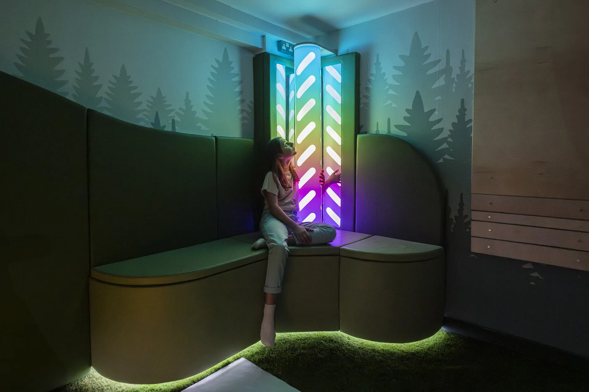 Historically designers of sensory rooms have tended to focus on the former, creating beautiful – but busy – rooms and environments that are excellent at providing sensory stimulation, but which are too overwhelming for many autistic children. Tigerplay are dedicated to considering both aspects of autistic sensory life and provide quiet spaces alongside these more traditional sensory rooms.